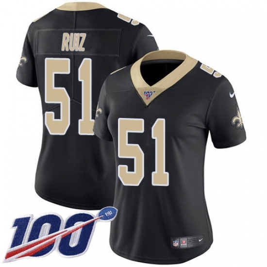 Women's New Orleans Saints #51 Cesar Ruiz Black Team Color Stitched NFL 100th Season Vapor Untouchable Limited Jersey