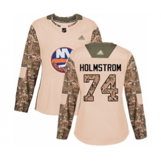 • Women's New York Islanders #74 Simon Holmstrom Authentic Camo Veterans Day Practice Hockey Jersey