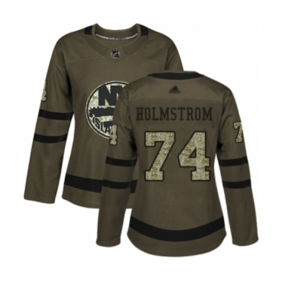 Women's New York Islanders #74 Simon Holmstrom Authentic Green Salute to Service Hockey Jersey