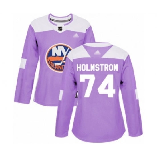 • Women's New York Islanders #74 Simon Holmstrom Authentic Purple Fights Cancer Practice Hockey Jersey