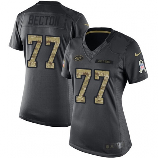 Women's New York Jets #77 Mekhi Becton Black Stitched Limited 2016 Salute to Service Jersey