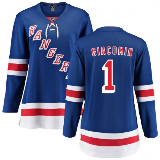 • Women's New York Rangers #1 Eddie Giacomin Fanatics Branded Royal Blue Home Breakaway NHL Jersey