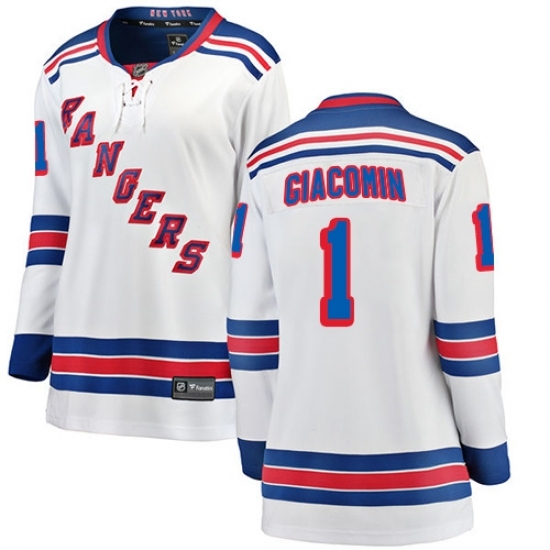 • Women's New York Rangers #1 Eddie Giacomin Fanatics Branded White Away Breakaway NHL Jersey