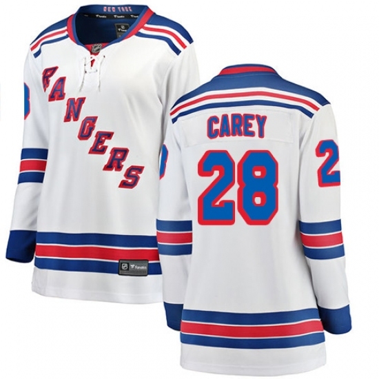 • Women's New York Rangers #28 Paul Carey Fanatics Branded White Away Breakaway NHL Jersey