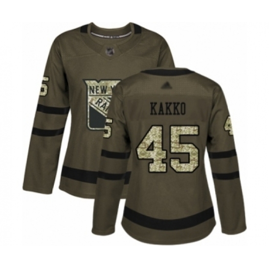 Women's New York Rangers #45 Kaapo Kakko Authentic Green Salute to Service Hockey Jersey