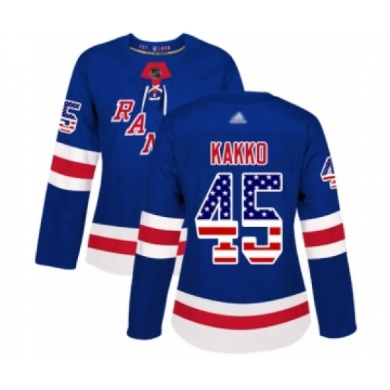 Women's New York Rangers #45 Kaapo Kakko Authentic Royal Blue USA Flag Fashion Hockey Jersey