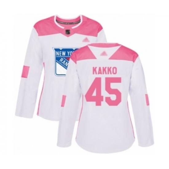 Women's New York Rangers #45 Kaapo Kakko Authentic White Pink Fashion Hockey Jersey