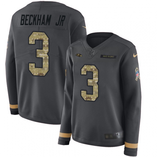 Women's Nike Baltimore Ravens #3 Odell Beckham Jr. Anthracite Salute to Service Stitched NFL Limited Therma Long Sleeve Jersey