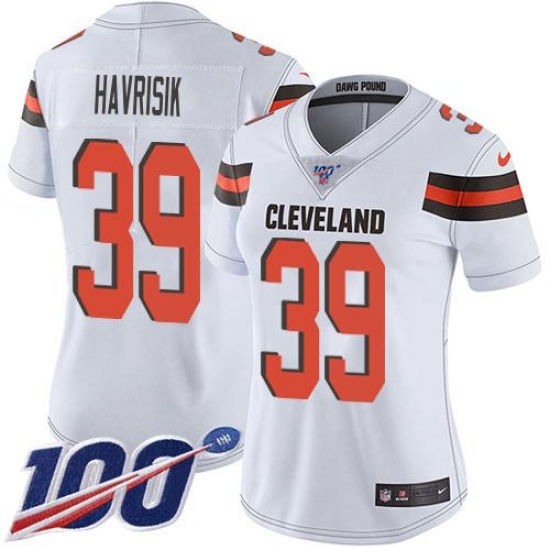 • Women's Nike Cleveland Browns #39 Lucas Havrisik White Stitched NFL 100th Season Vapor Untouchable Limited Jersey