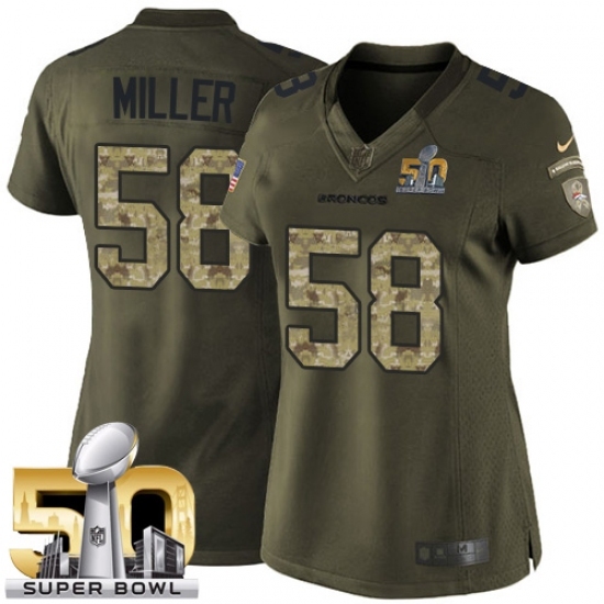 Women's Nike Denver Broncos #58 Von Miller Limited Green Salute to Service Super Bowl 50 Bound NFL Jersey