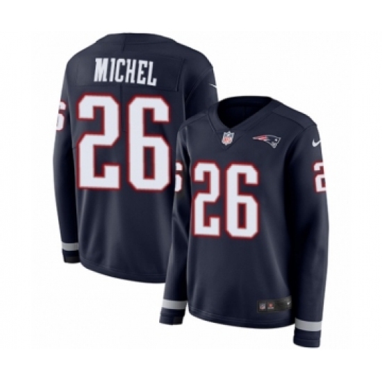 Women's Nike New England Patriots #26 Sony Michel Limited Navy Blue Therma Long Sleeve NFL Jersey