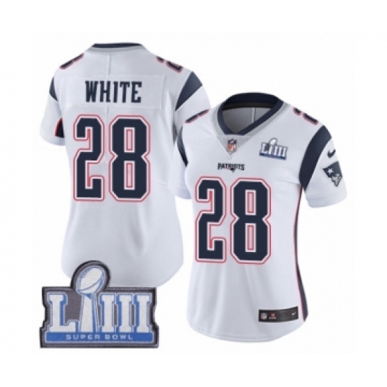 • Women's Nike New England Patriots #28 James White Vapor Untouchable Limited Player Super Bowl LIII Bound NFL Jersey