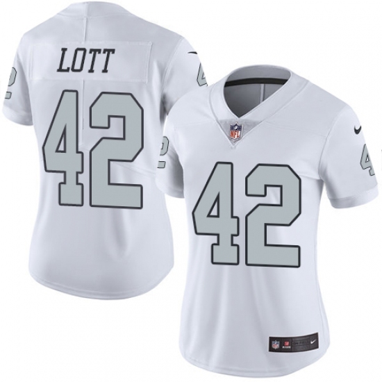 • Women's Nike Oakland Raiders #42 Ronnie Lott Limited White Rush Vapor Untouchable NFL Jersey