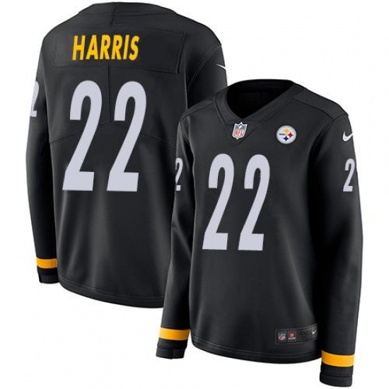 • Women's Nike Pittsburgh Steelers #22 Najee Harris Black Team Color Stitched NFL Limited Therma Long Sleeve Jersey