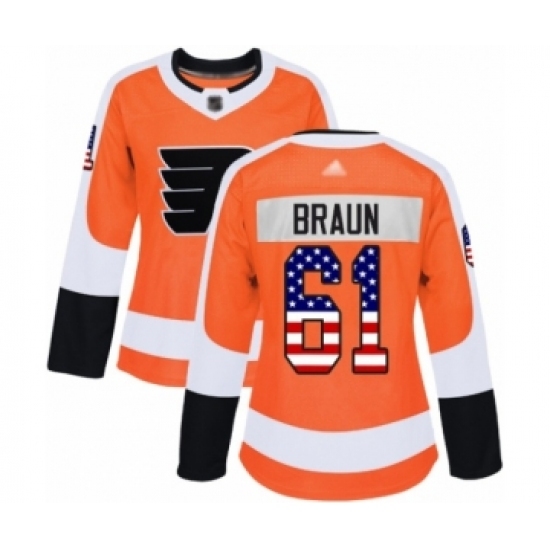 Women's Philadelphia Flyers #61 Justin Braun Authentic Orange USA Flag Fashion Hockey Jersey
