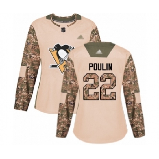 • Women's Pittsburgh Penguins #22 Samuel Poulin Authentic Camo Veterans Day Practice Hockey Jersey