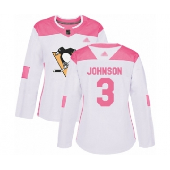 Women's Pittsburgh Penguins #3 Jack Johnson Authentic White Pink Fashion Hockey Jersey
