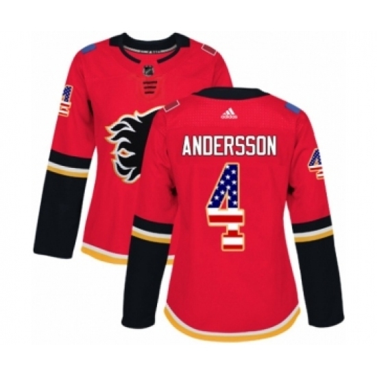 • Women's Reebok Calgary Flames #4 Rasmus Andersson Authentic Red USA Flag Fashion NHL Jerseyy