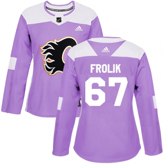 • Women's Reebok Calgary Flames #67 Michael Frolik Authentic Purple Fights Cancer Practice NHL Jersey