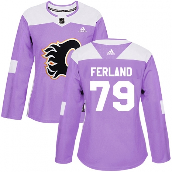 • Women's Reebok Calgary Flames #79 Michael Ferland Authentic Purple Fights Cancer Practice NHL Jersey
