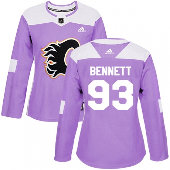 • Women's Reebok Calgary Flames #93 Sam Bennett Authentic Purple Fights Cancer Practice NHL Jersey