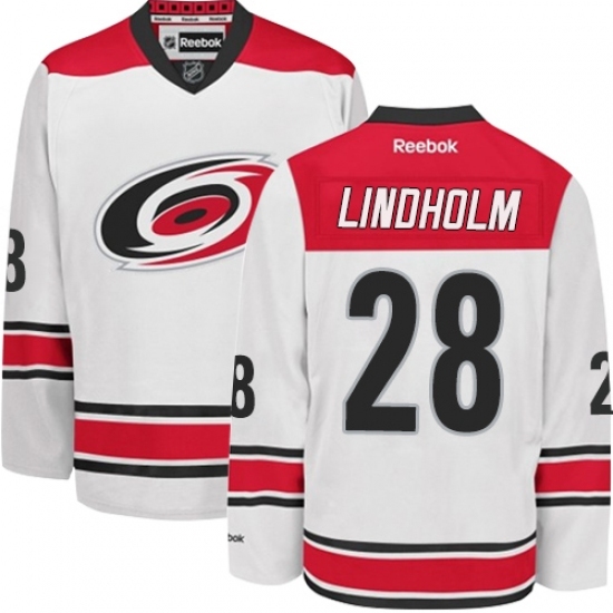Women's Reebok Carolina Hurricanes #28 Elias Lindholm Authentic White Away NHL Jersey