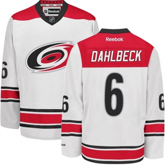 • Women's Reebok Carolina Hurricanes #6 Klas Dahlbeck Authentic White Away NHL Jersey