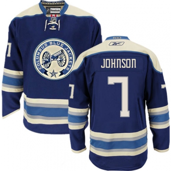 • Women's Reebok Columbus Blue Jackets #7 Jack Johnson Authentic Navy Blue Third NHL Jersey