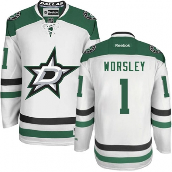 • Women's Reebok Dallas Stars #1 Gump Worsley Authentic White Away NHL Jersey