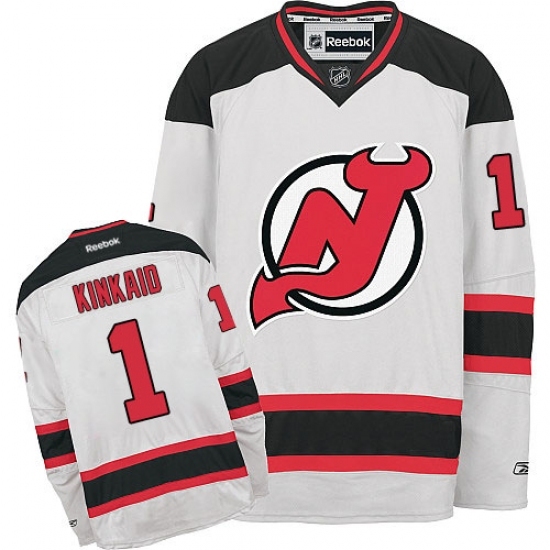 • Women's Reebok New Jersey Devils #1 Keith Kinkaid Authentic White Away NHL Jersey