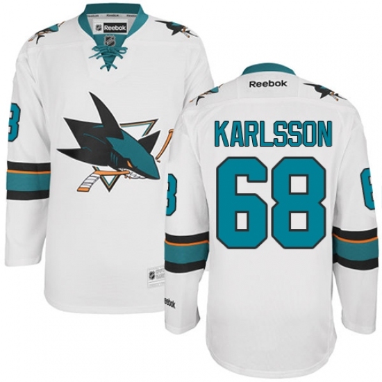 • Women's Reebok San Jose Sharks #68 Melker Karlsson Authentic White Away NHL Jersey