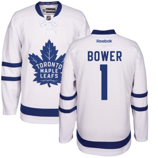 • Women's Reebok Toronto Maple Leafs #1 Johnny Bower Authentic White Away NHL Jersey