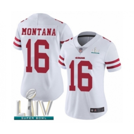 Women's San Francisco 49ers #16 Joe Montana White Vapor Untouchable Limited Player Super Bowl LIV Bound Football Jersey