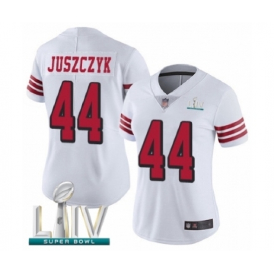 Women's San Francisco 49ers #44 Kyle Juszczyk Limited White Rush Vapor Untouchable Super Bowl LIV Bound Football Jersey
