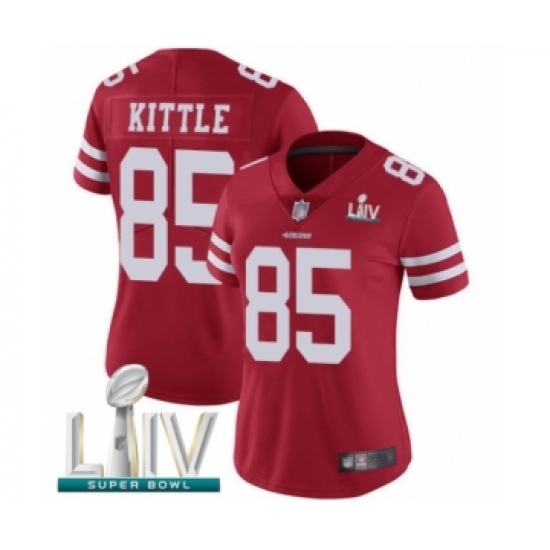 • Women's San Francisco 49ers #85 George Kittle Red Team Color Vapor Untouchable Limited Player Super Bowl LIV Bound Football Jersey