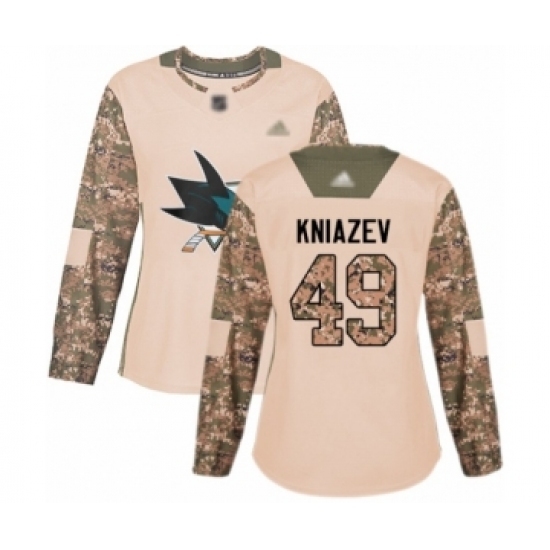 • Women's San Jose Sharks #49 Artemi Kniazev Authentic Camo Veterans Day Practice Hockey Jersey