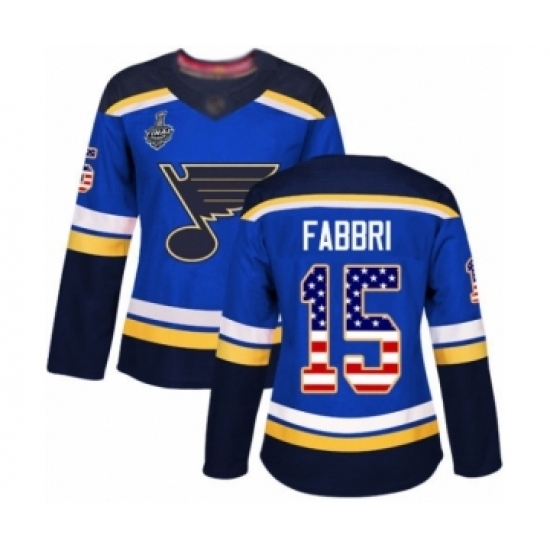 Women's St. Louis Blues #15 Robby Fabbri Authentic Blue USA Flag Fashion 2019 Stanley Cup Final Bound Hockey Jersey