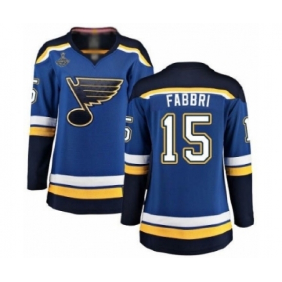 • Women's St. Louis Blues #15 Robby Fabbri Fanatics Branded Royal Blue Home Breakaway 2019 Stanley Cup Champions Hockey Jersey