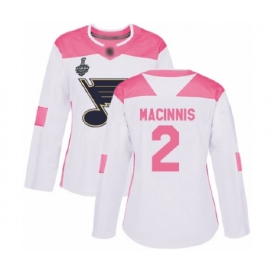 Women's St. Louis Blues #2 Al Macinnis Authentic White Pink Fashion 2019 Stanley Cup Final Bound Hockey Jersey