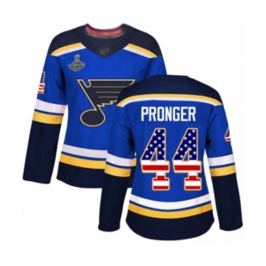 Women's St. Louis Blues #44 Chris Pronger Authentic Blue USA Flag Fashion 2019 Stanley Cup Champions Hockey Jersey