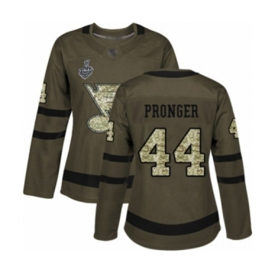 Women's St. Louis Blues #44 Chris Pronger Authentic Green Salute to Service 2019 Stanley Cup Final Bound Hockey Jersey