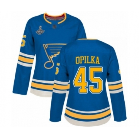 Women's St. Louis Blues #45 Luke Opilka Premier Navy Blue Alternate 2019 Stanley Cup Champions Hockey Jersey