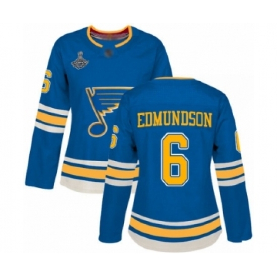 Women's St. Louis Blues #6 Joel Edmundson Authentic Navy Blue Alternate 2019 Stanley Cup Champions Hockey Jersey