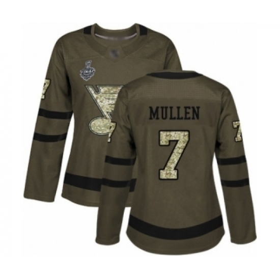 Women's St. Louis Blues #7 Joe Mullen Authentic Green Salute to Service 2019 Stanley Cup Final Bound Hockey Jersey