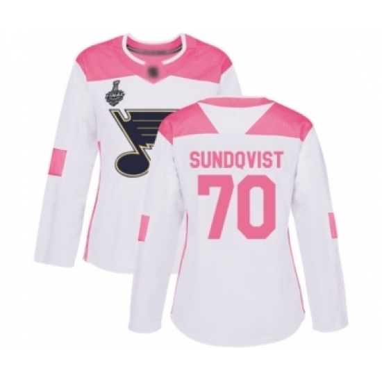 Women's St. Louis Blues #70 Oskar Sundqvist Authentic White Pink Fashion 2019 Stanley Cup Final Bound Hockey Jersey
