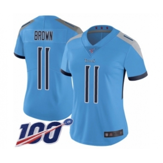• Women's Tennessee Titans #11 A.J. Brown Light Blue Alternate Vapor Untouchable Limited Player 100th Season Football Jersey