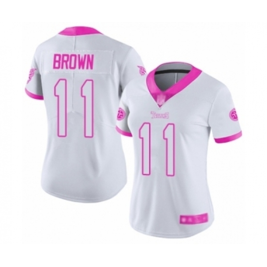 Women's Tennessee Titans #11 A.J. Brown Limited White Pink Rush Fashion Football Jersey