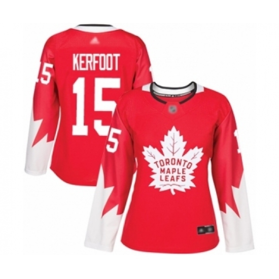 • Women's Toronto Maple Leafs #15 Alexander Kerfoot Authentic Red Alternate Hockey Jersey