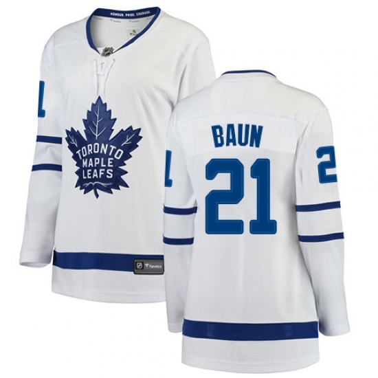 Women's Toronto Maple Leafs #21 Bobby Baun Authentic White Away Fanatics Branded Breakaway NHL Jersey