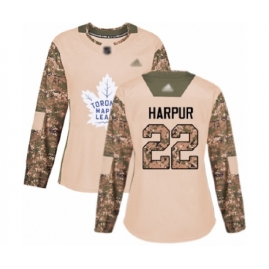 • Women's Toronto Maple Leafs #22 Ben Harpur Authentic Camo Veterans Day Practice Hockey Jersey